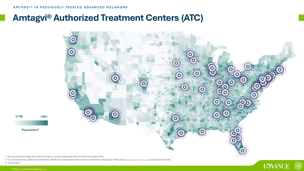 13 © 2026, Iovance Biotherapeutics, Inc. • Modular design • Global supply and logistics • C apacity for up to 5K patients/year • Optimal utilization , quality & COS Manufacturing Facility Dedicated to Commercial and Clinical TIL Cell Therapies COS = cost of sales Philadelphia, PA