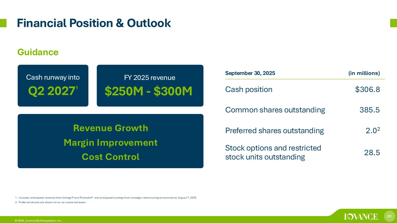 30 © 2026, Iovance Biotherapeutics, Inc. 30 Corporate Summary